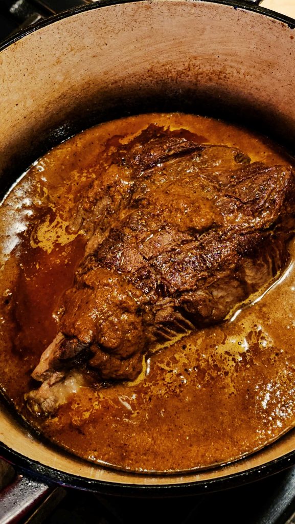 - 2.5- 3 lbs chuck roast, some of the fat removed