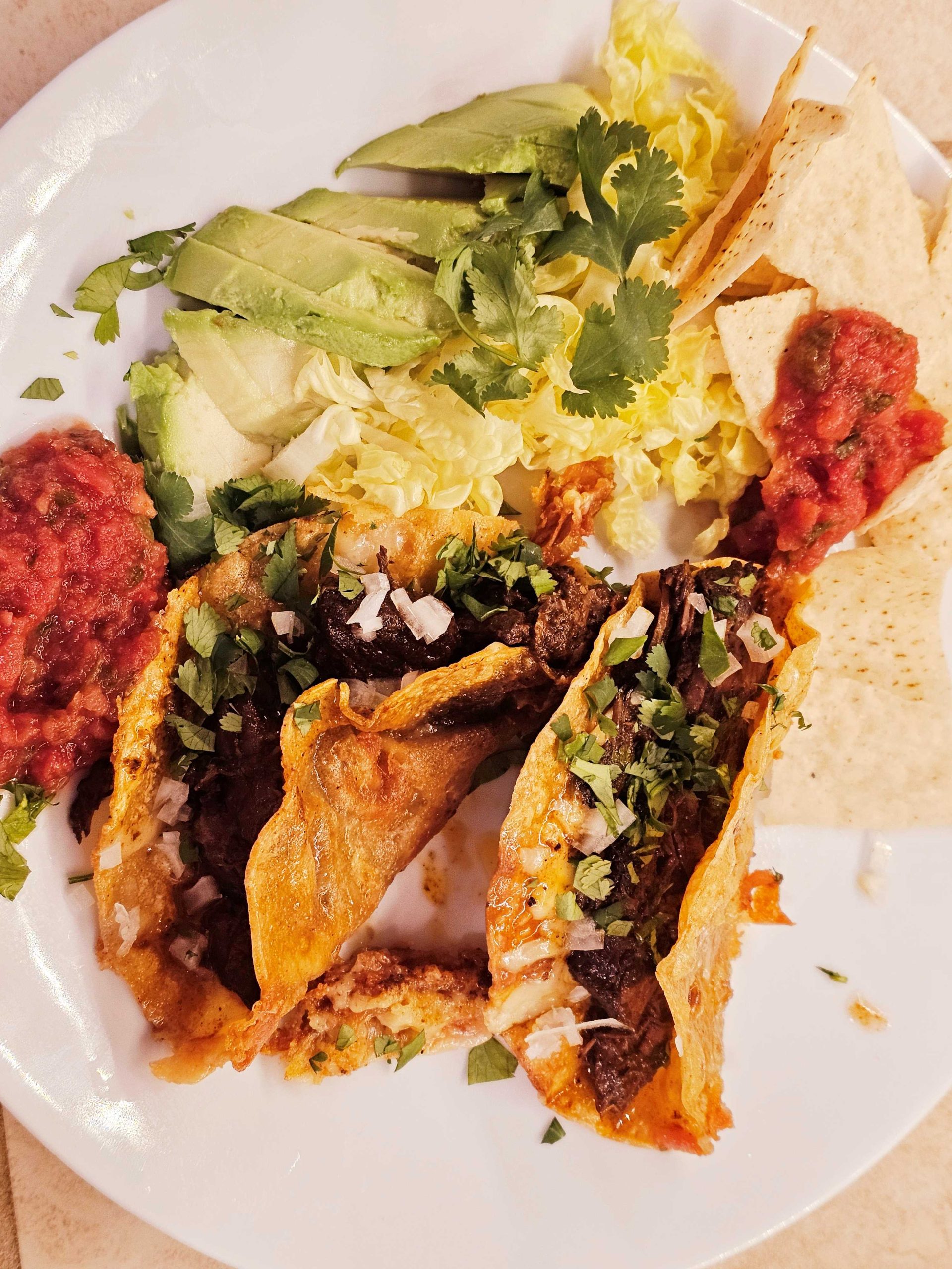 - Serve with finely shredded cabbage, tomato, avocado, and salsa.