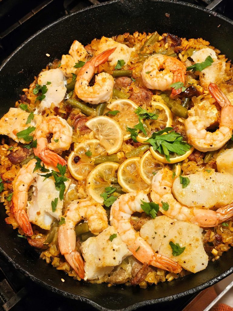 When I think of paella, I think of an incredibly versatile dish. This is apparent by the paella restaurants in Spain having literally ten to fifteen, or even more different types! You can literally add whatever you like to the dish, from meats, and seafoods, to vegetables. A few requirements that I find necessary is to use paella rice and a good quality saffron for the traditional taste.